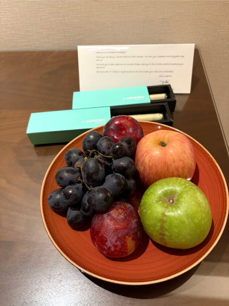 1日目のみでしたが、夕方お出かけから戻ってきたら、テーブルの上にメッセージカードとフルーツの盛り合わせ、そしてチョコレートが置かれておりました。