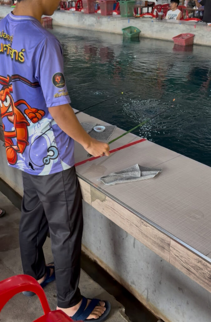 竿等のレンタル料も餌も全てこの100バーツに含まれているので、何も用意するものはありません。ただ、釣り上げたエビが近くまで来た時に、みなさん網で最後は掬い上げていたので、本気で釣りたい方は、網を持っていくことをお勧めします。(私は、お隣のタイの方がサポートしてくれました😭)