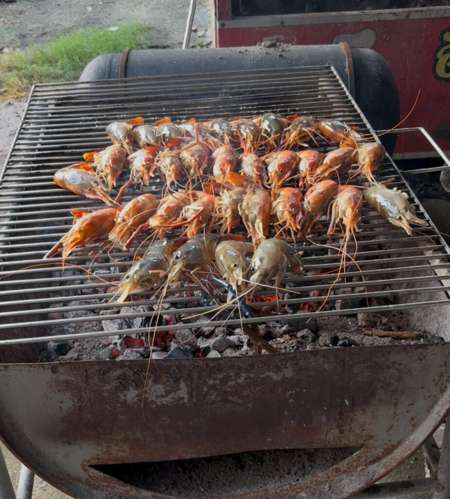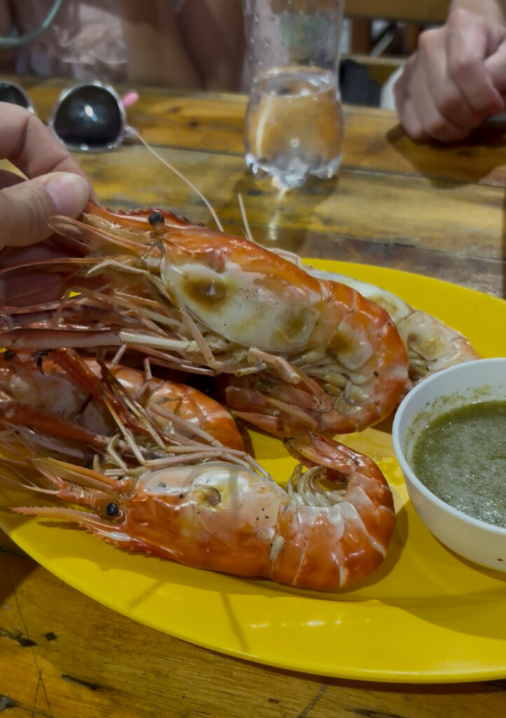 私たちはグリルのみにしました。2時間かけて釣ったエビ6匹を4人で。笑
