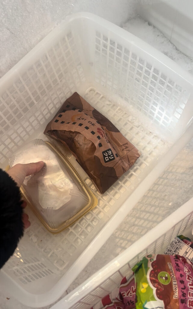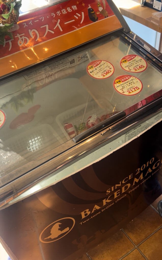 店内の一角に冷凍庫?があり、そちらに訳あり品が入っておりました。