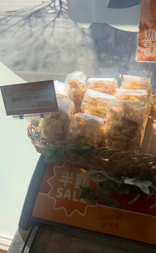 着いた時間が遅かったので、「もうもしかしたら残ってないかもなぁ」とドキドキしながら覗き込んでみると、まだありました!!お値段は、正規品の半額です!🥹